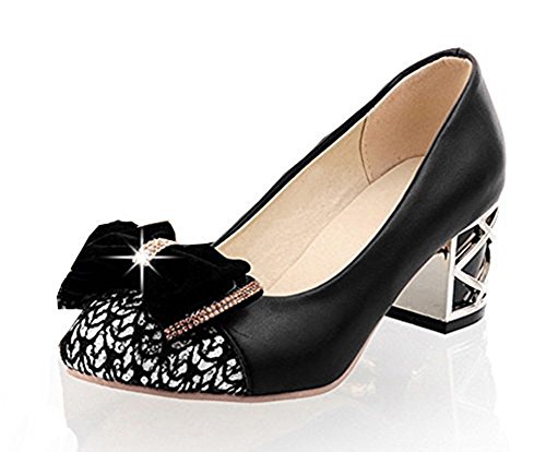 Best Seller! Aisun Women's Sweet Bowknot Chunky Mid Heels Dress Pumps Shoes Black 7 UK Review